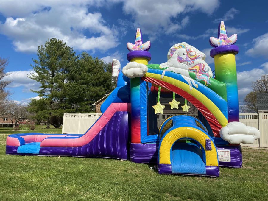 Unicorn Magic can be rented as a dry combo or as a wet waterslide. Everyone needs a little unicorn magic in their life, so book for your event today!