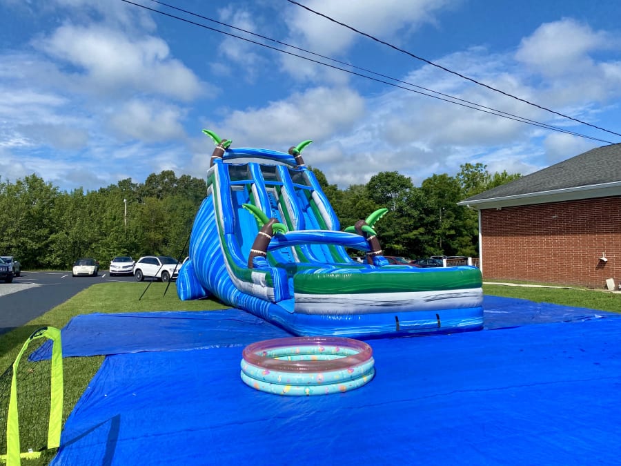 The Hurricane Slide is Dual Lane and 20' tall! It is loads of fun for all ages! You'll have a blast racing down side-by-side with your friends!