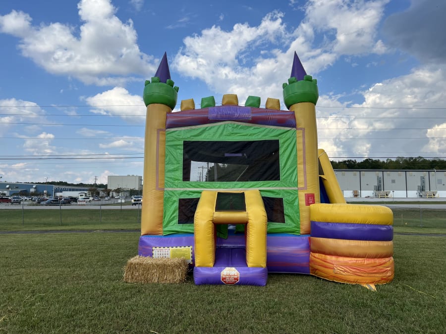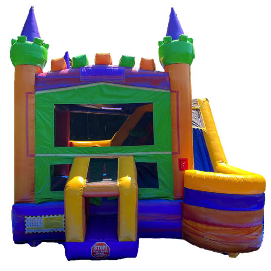 Are you ready to Take a tour of our XL Castle Combo inflatable? Let's go! In the video, you see all of the fun features inside & even go down the waterslide with us! Hang on & enjoy the ride!