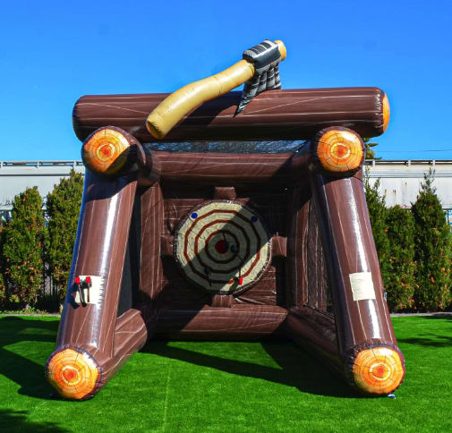 The rule is to hit the red or blue dot on the target with your axe (the blue dot r the most points). Points are awarded for each successful throw. The player with the most points at the end of the game wins! Swing skills to the test and see who can be crowned champion of the Axe Throwing Challenge Game! This bouncy inflatable game is perfect for all ages and skill levels. It is sure to provide hours of entertainment for everyone.