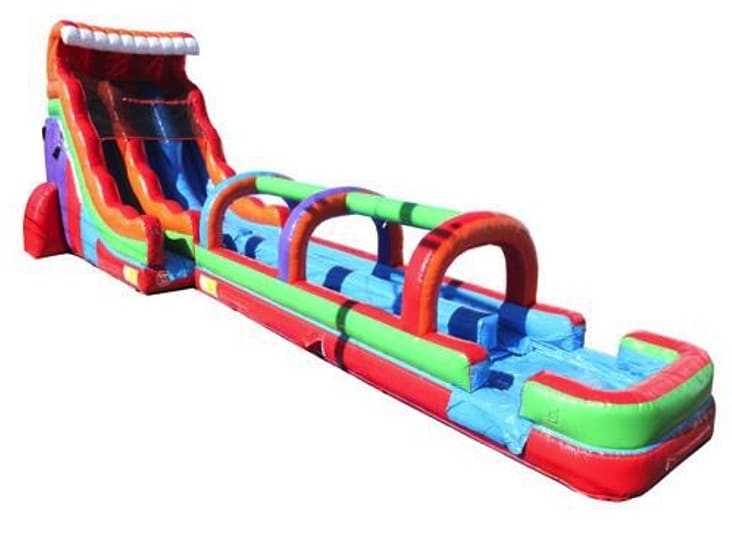 The Retro 19' Double Lane Waterslide with 32' Slip & Slide is truly like an amusement park ride! Your family and friends will have endless fun on this water rollercoaster! It's great for children and adults!